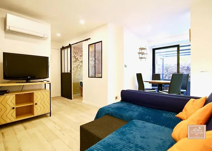 Ez a teraszt kínáló apartman 7 km-re helyezkedik el a Place de la Liberté területétől.
